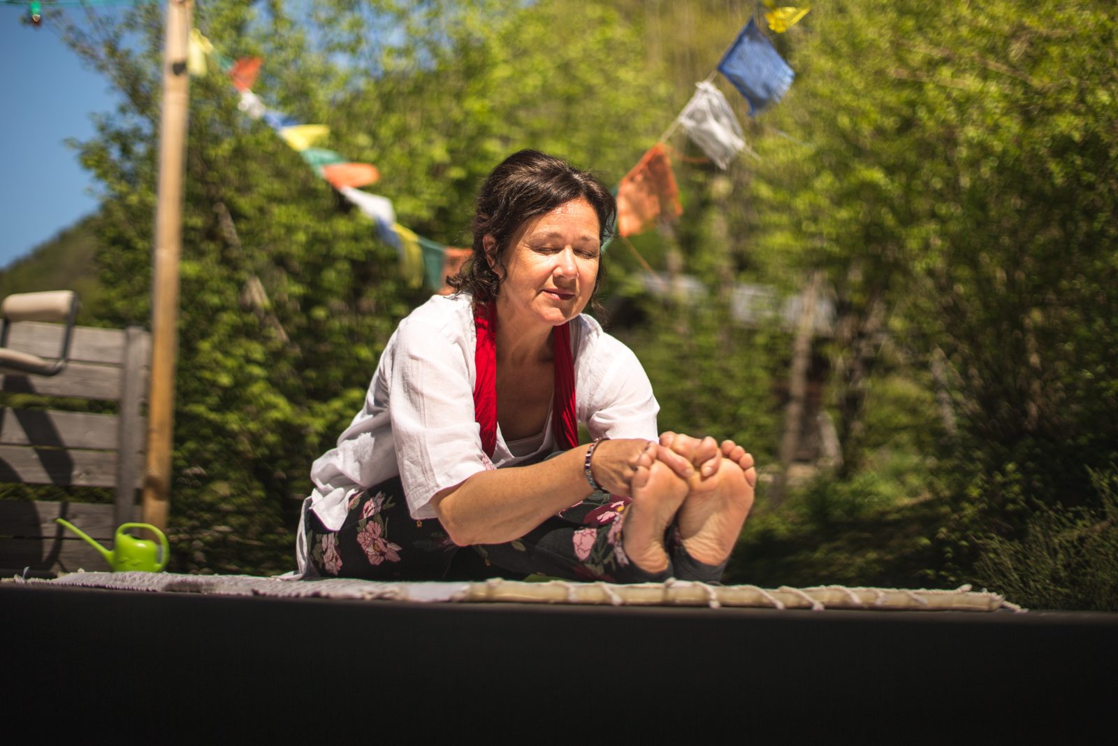 Hatha Yoga Eva Ruchpaul methode: Ademhaling, houding, diepe ontspanning en revitalisering aan het einde van de sessie.