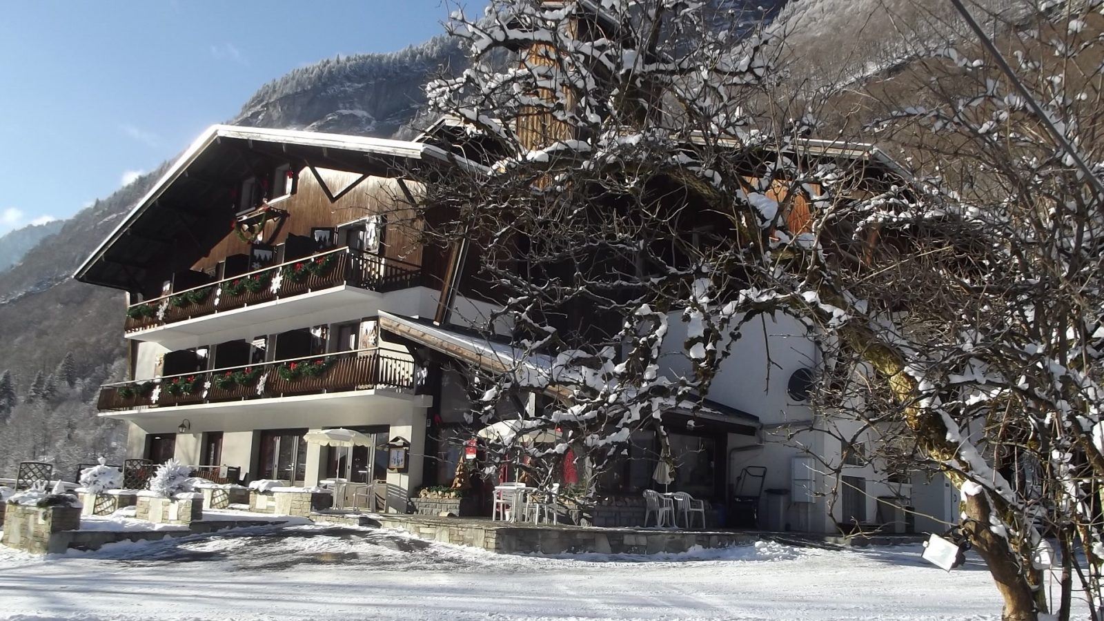 Hotel** & Mountain Centre "Le Choucas" ligt op een uitzonderlijke locatie aan de ingang van het Fer à Cheval keteldal, in de prachtige vallei van de Haut Giffre in de Haute-Savoie.
