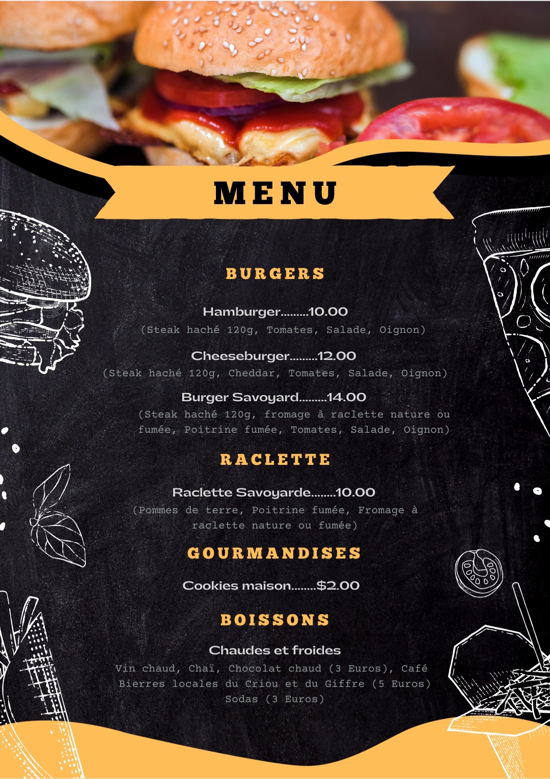Kom en ontdek onze burgers, kebabs en, voor de zoetekauwen, onze verse frietjes!!!!